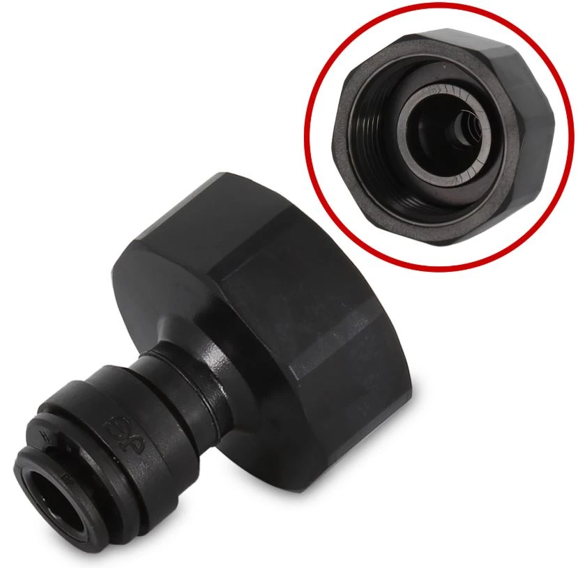 Адаптор с бърза връзка (женски), произведен от John Guest. Той е проектиран да свързва тръби с външен диаметър 8 mm към мъжка резба 3/4" BSP.