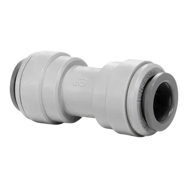 Прав съединител (straight connector) с технология за бързо свързване (push-fit), предназначен за тръби с външен диаметър 5/16 инча произведен от John Guest. Идеален за системи за питейна вода, хранително-вкусовата промишленост (напр. охладители за бира, диспенсъри), пневматика и вакуумни системи.