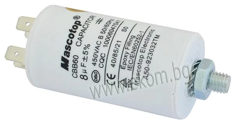 Кондензатор 8mF/450VAC с кабелни обувки