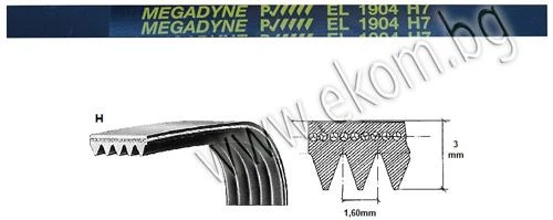 040817 - Ремък 1904мм H7 EL/ 6 канала - еластичен Whirlpool - Ariston Merloni - Indesit - Ardo Merloni