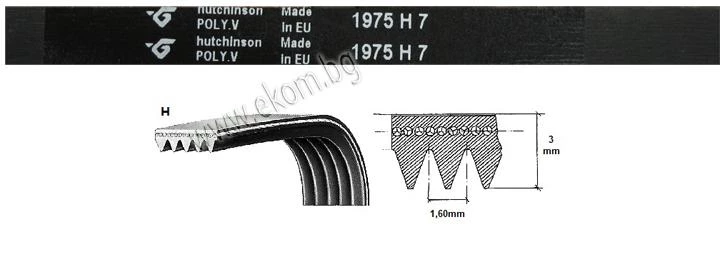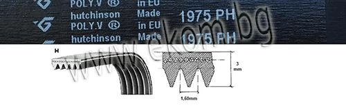 Ремък 1975мм H7 / 6 канала 1258288107 Whirlpool - Bauknecht - Ardo Merloni - Bosch - Siemens - Sangiorgio - Brandt