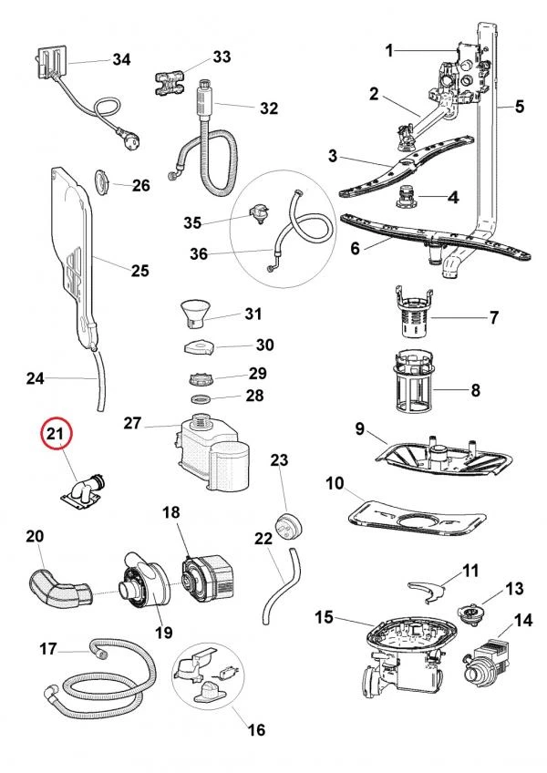042180 Маркуч към помпа ARISTON BAUKNECHT FRANKE HOTPOINT HOTPOINT/ARISTON IGNIS IKEA INDESIT PRIVILEG SCHOLTES WHIRLPOOL