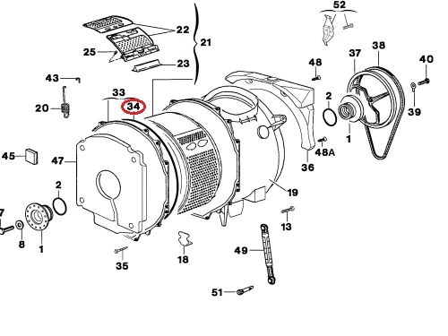 Гуменото уплътнението служи за херметизиране на връзката между казана и капака, предотвратявайки течове по време на пране.