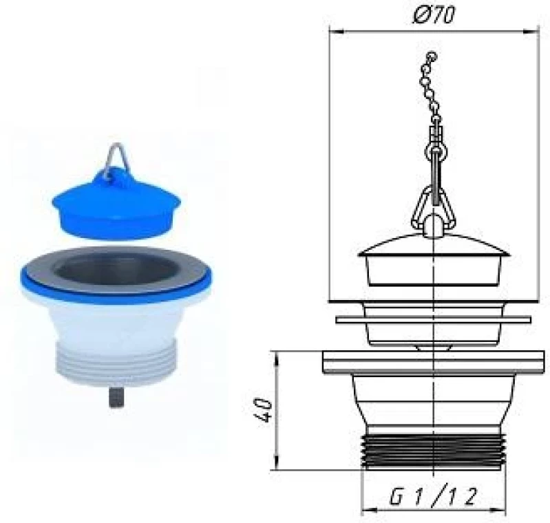 417008 ВИТЛО ЗА СИФОН С ТАПА PVC Ф70 1 1/2" M105