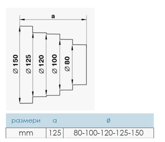 114039 Универсален редуктор предназначен за свързване на кръгли въздуховоди с диаметър от ∅ 80 до ∅ 150 мм