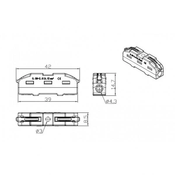 Този съединител позволява твърди, многожилни и фино многожилни кабели да бъдат свързани заедно без необходимост от инструменти.