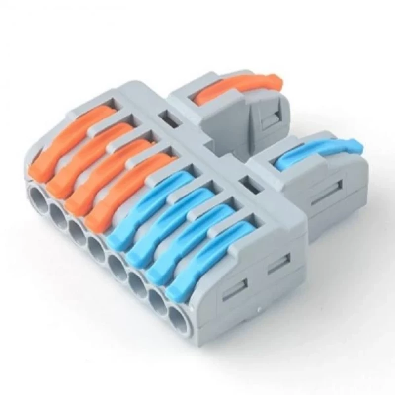 Този съединител позволява твърди, многожилни и фино многожилни кабели да бъдат свързани заедно без необходимост от инструменти.