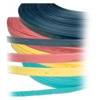 301016 Тънкостeнните термосвиваеми шлаухи се използват за изолиране на кабелни връзки, при ремонт на кабели за защита на кабелната глава от корозия, защита на изолацията на кабела от вода и влага, възстановяване на целостта на изолацията на кабела и др. Представляват пластмасова тънкостенна тръба, която под влияние на температура по-висока от 120°С свива първоначалния си диаметър в определена степен. Материала е устойчив на високи температури и UV лъчи. Материалът представлява т.нар трайно омрежена пластмаса. Този материал се получава като с помощта на високоенергиини лъчи от електрони се обработи пластмасовата заготовка така че се образуват вътрешно мoлекулярни връзки между съседни молекули. След това тръбата се загрява до точката на кипене, при това положение тръбата се раздува, като се раздуват и вътрешно молекулярните връзки. След това тръбата рязко се охлажда и молекулите остават в положение на разтеглени връзки неопределено дълго време. Загрявайки тръбата повторно (след като е монтирана на съответния кабел) кристалите се разтапят отново но вследствие на мрежестата структура се възстановяват към първоначалния диаметър на тръбата и заемат формата на кабела, като го притискат и не позволяват на влагата да навлиза под тръбата. Технически характеристики: - Материал: тройно омрежен полиолефин - Разцветки: син, черен, червен, жълт, жълтозелен, зелен, бял - Степен на свиване: min 2:1 - Температура на свиване: min 120°С - Изолационно съпротивление: 1х10¹²Ω/cm - Изолационно напрежение: 1000V - Температура на околната среда: -40° до +100°С - Устойчивост на пламък: гори слабо - Не отделя вредни вещества Стандарт: EN 60684