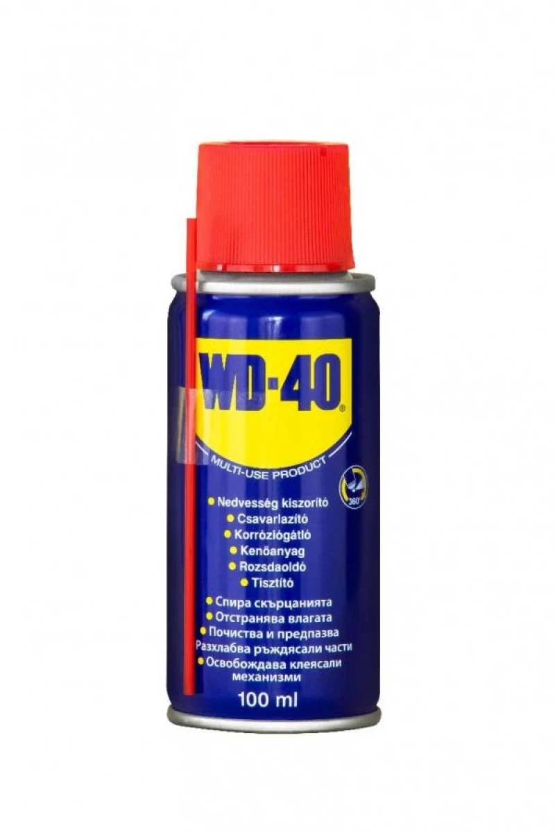 910101 - Мултифункционалният WD-40 предпазва метала от ръжда и корозия, освобождава ръждясали механизми, отблъсква влагата, почиства, предпазва и смазва почти всичко. Дори премахва грес, мръсотия и други замърсявания от повечето повърхности. 360° дюза позволяваща употреба в нормално и обърнато положение и за най - труднодостъпните места. Премахва влагата, за да предотврати появата на ръжда и къси съединения. - Прониква в заяли части - Смазва механизми за равномерна работа - Премахва масла, греси и замърсявания - Предпазва метални повърхности от ръжда и корозия - Лесен за употреба Разфасовка: флакон 100 мл WD-40 е разработен преди повече от 60 години от трима служители на Rocket Chemical Company. В малка лаборатория в Сан Диего – Калифорния, те се опитват да създадат серия от продукти за защита от ръжда и обезмаслители за употреба в космическата индустрия. Ръководител на екипа е бил химикът Норм Ларсен, който за нуждите на НАСА е търсел решение за разтвор, който да „измества“ водата, с цел предпазване на космическата ракета Атлас от ръжда и корозия. 40 опита са били необходими, за да се получи световно известната формула. Така и продуктът е получил своето име – WD-40 (water displacement 40th attempt).