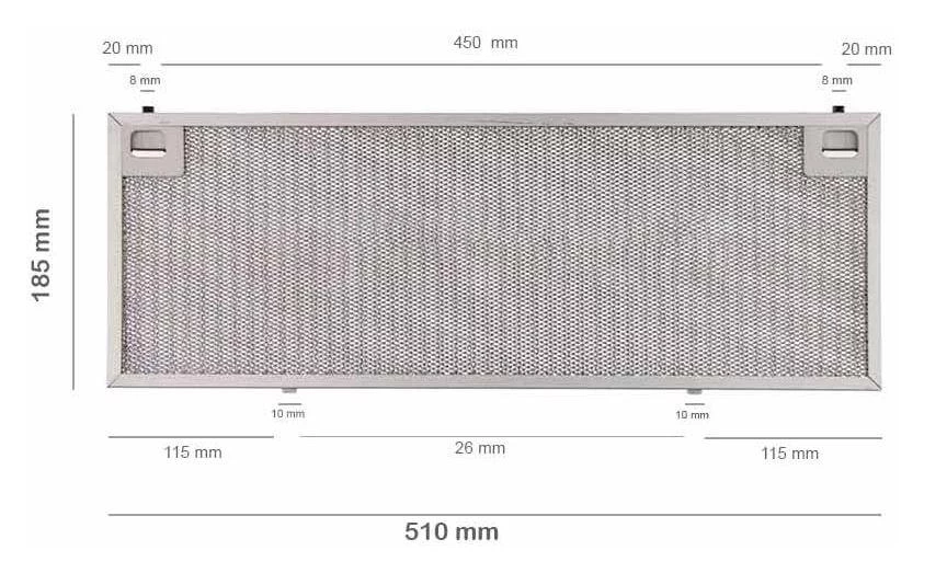 Филтър алуминиев Размери: 184 x 510 x 9 mm
