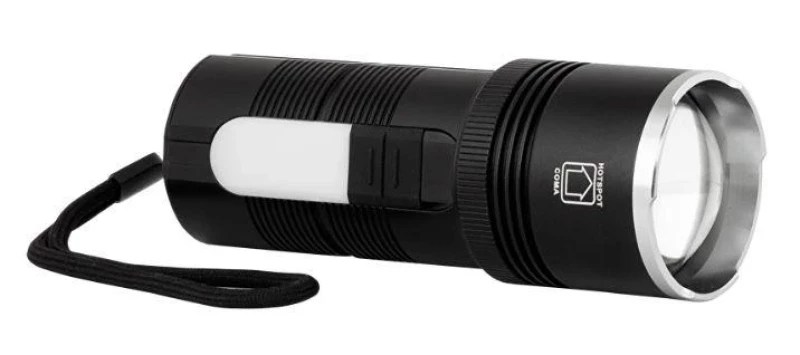 LED Фенер със зуум, странично светене и power bank функция, с мощност 10W/3W, цветна температуеа 6500K/3500K, 5V DC, степен на защита IP44 и следните предимства: