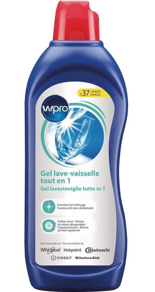 Почистващ Wpro гел за съдомиялни машини, който старателно обезмаслява и прави съдовете и чашите блестящи и без петна. В сравнение с други гелове на пазара, той не оставя следи по съдовете. Спестява ви енергия: използва се с краткия цикъл (30 мин.). Подходяща е за използване в тава за съдомиялна машина. Практичен! Не оставя химически остатъци по съдовете, пести ви енергия, защото може да се използва и с краткия цикъл (30 мин.). Безупречна чистота: функцията сол за дълбоко почистване + функцията за изплакване, която придава изключителен блясък + технологията за елиминиране на миризмата, която елиминира дори най-упоритите
