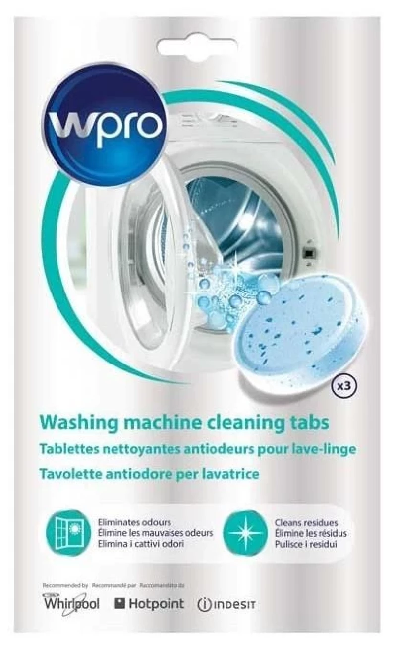 DAFR108 Почистващи и отстраняващи лошите миризми в пералнята таблетки - 3 бр. Таблетките Wpro отстраняват лошите миризми и остатъци от вашата пералня. Професионалната му формула, която използва кислородно действие за проникване, разтваряне и отстраняване на остатъците и лошите миризми във вашата пералня, достигайки до места, които вие не можете да достигнете. Например гуменото уплътнение на вратата. Използвайте веднъж месечно или когато е необходимо, за да запазите вашата пералня винаги свежа и чиста.