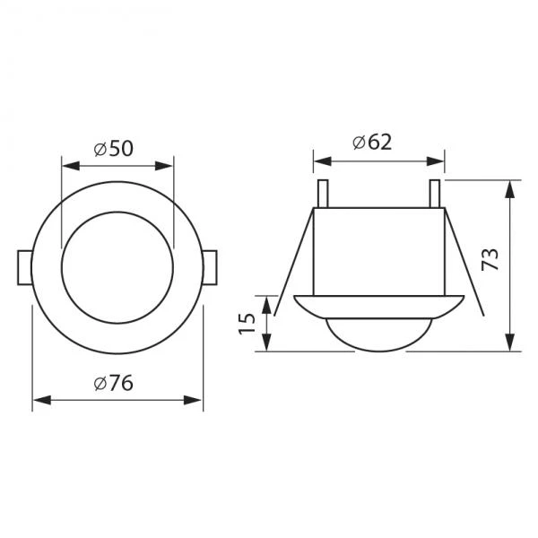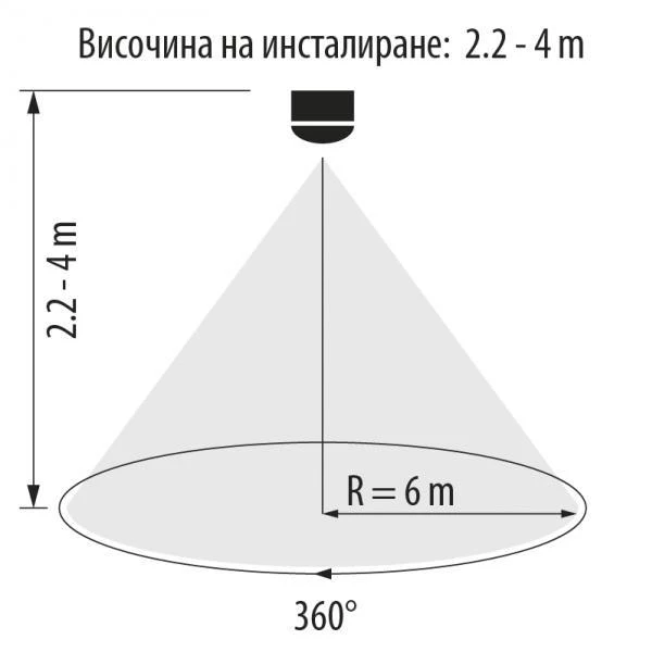 Сензорът е предназначен за вграждане в таван. Може да управлява LED осветление и лампи с нажежаема нишка. Има клас на защита IP20, подходящ за среда с нормални нива на влага и прах. Разполага със следните функции: